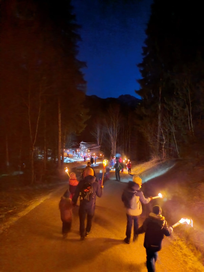 Nach einem gemeinsamen Gruppenfoto ging es anschließend im schein der Fackel wieder Bergab. Ein unvergessliches Erlebnis für Klein und Groß.