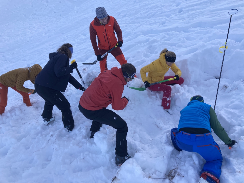 Für Skitouren abseits gesicherter Pisten Pflicht: LVS-Gerät, Schaufel und Sonde, optional ein Lawinenrucksack. Noch wichtiger: Mit dieser Notfallausrüstung auch professionell umgehen zu können. Genau dafür organisiert die AV Sektion Peiting alljährlich einen lehrreichen, praxisorientierten Kurs. 16 Teilnehmer im Alter von 20 bis 60 Jahren nahmen dieses Mal an „Notfall Lawine“ teil. Die Bergwacht-erfahrenen Referenten Florian Hofmann und Peter Echtler luden hierzu am 18. Dezember 2025 zum Theorieabend ins AV-Stüberl an der Bachfeldstraße. Zwei Tage später ging’s in Fahrgemeinschaften nach Reutte. Aufgrund Schneemangel sollte sich die Idee, mit der Gondel ins Skigebiet Hahnenkamm hochzufahren, von der Bergstation wenige Höhenmeter abzufahren und schließlich gen Süden in ein terrassenförmiges Gelände abseits des gesicherten Skiraums zu steigen, als Volltreffer erweisen. Aufgeteilt in zwei Gruppen, wurde den ganzen Tag über intensiv geübt. „Signal! Zehn! Treffer!“, ertönt es immer wieder bei der Lawinenverschüttetensuche mit „Pieps“. Ins Schwitzen kamen Teilnehmer wie Kursleiter auch im Rahmen einer Mehrfachverschüttetensuche sowie beim Ausschaufeln einer „verschütteten Person“ nach der V-förmigen-Methode des Schweizer Lawinenexperten Manuel Genswein. Auch spannend: Hypothermie, stabile Seitenlage, vorsichtiges Abnehmen des Skihelms sowie professionelles Anlegen einer Rettungsdecke – erstmals integrierte der Peitinger Alpenverein auch „Erste Hilfe“ in den bewährten Kurs, konnte hierfür Bergrettungssanitäter Ludwig Spitzer als zusätzlichen Referenten gewinnen. Insofern ein rundum gelungener Exkurs für alle Teilnehmer, die vereinzelt bis aus Denklingen, Hohenfurch, ja sogar aus der Tölzer Ecke dabei waren. Nun gilt es dran zu bleiben, das Suchen, Sondieren und Schaufeln immer und immer wieder zu üben. Denn im Falle eines Lawinenunfalls zählt nur eins: Jede Sekunde!
