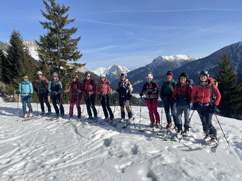 Eine wunderschöne Skitour im Lechtal unternahmen 12 Teilnehmer von der DAV-Sektion Peiting. Gestartet wurde in Elbigenalp über die Gibler Alm bis zur Bernhardseckhütte. Von dort ging es weiter bis kurz vor den Gipfel der Mutte auf 2.187m bzw. solange die Schneeverhältnisse noch gut waren. Bei herrlichem Wetter dann eine pulvrige Abfahrt zurück zur Hütte und nach einer kurzen Einkehr ging es schwungvoll auf gutem Forstweg zurück zum Ausgangsort. Insgesamt eine sehr schöne Tour wenn man bedenkt dass die Ziele aufgrund des mangelnden Schnees langsam ausgehen.